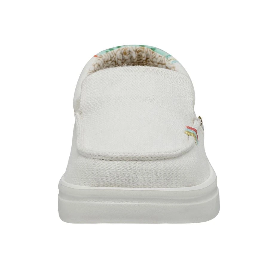 Introducing the Misty Rise collection, featuring the loafer BFF of our go-to gal Wendy. Created with a durable woven textile upper and detailed with a boho-cool stitching, giving plain cotton a run for its money. An airy foam insole adds an extra layer of cushion while finished off on an ultralight outsole. All wrapped up in the easy, slip-on silhouette of a classic loafer. HEYDUDE at its Misty-est.