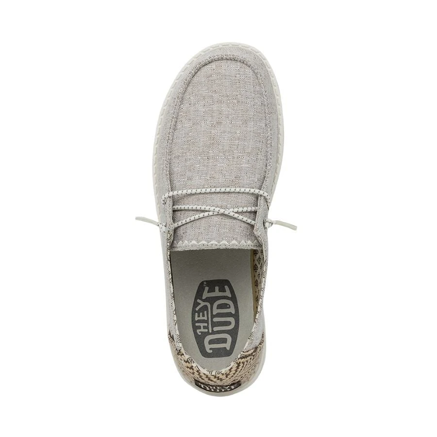 Our most popular moc meets soft chambray-cotton throughout. The Wendy Chambray collection embodies the Hey Dude lifestyle by combining our passion for comfort and quality. Created with a soft, chambray-blend upper, finished off with an easy-on, elastic lacing system and an ultralight outsole for extra comfort. This design is perfect for all day wear.