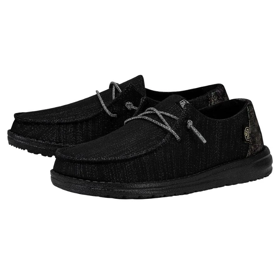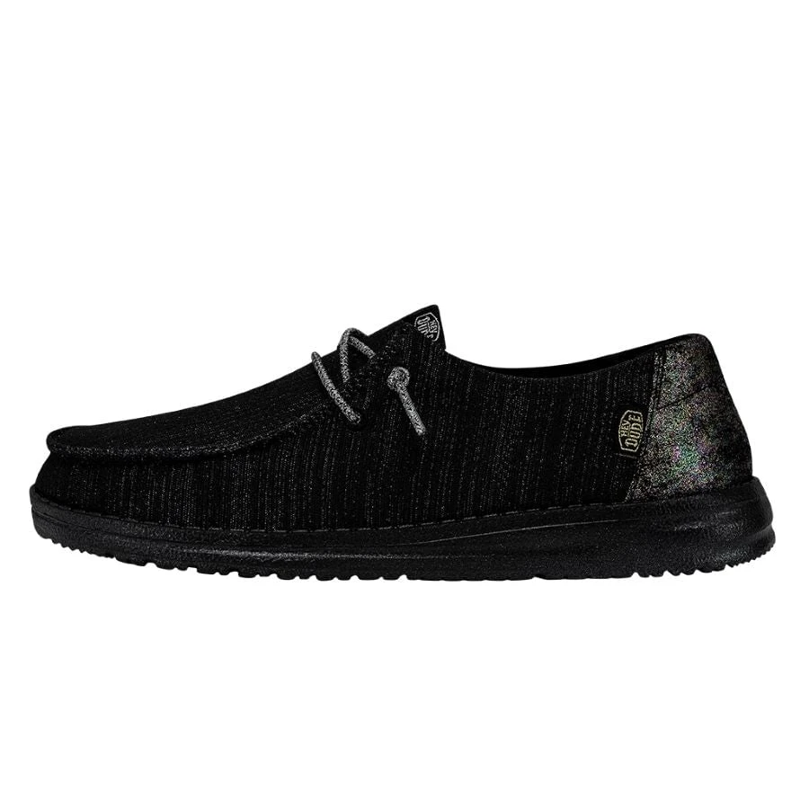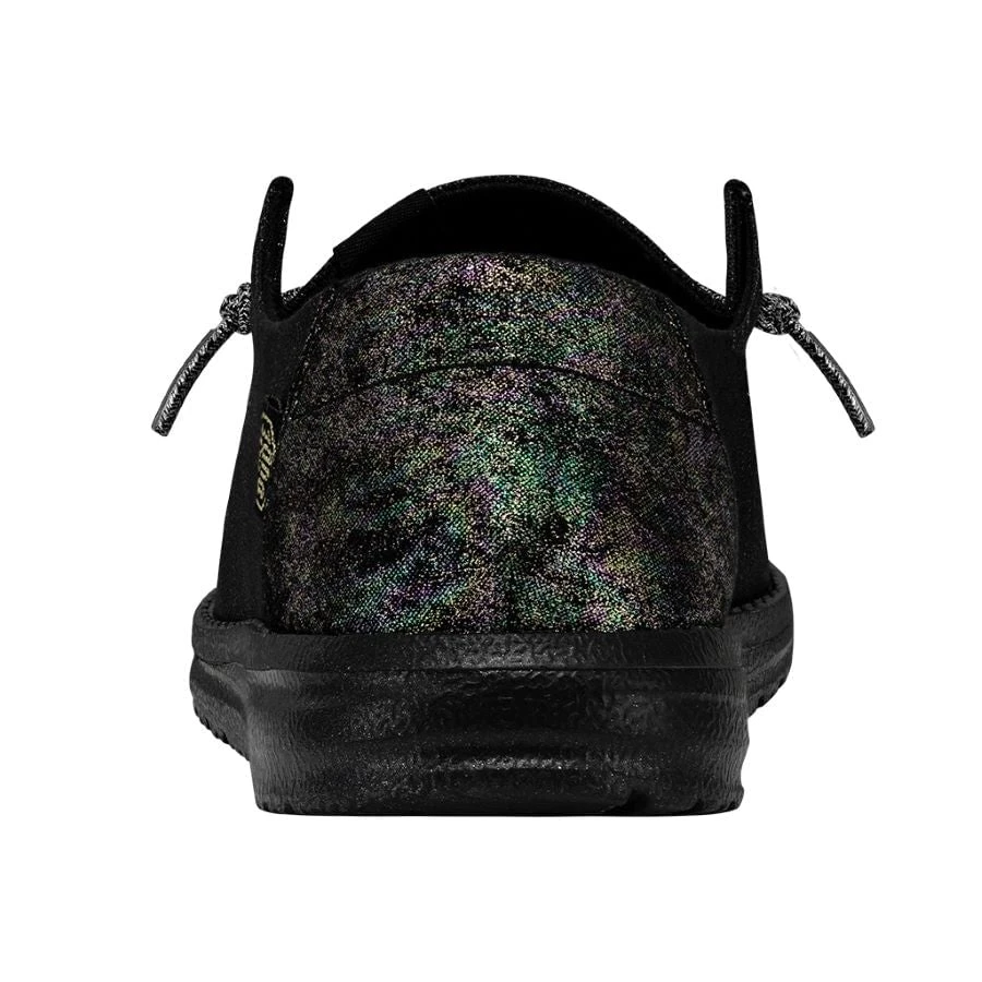 Time to smile for the camera with the sparkling Wendy Glitter collection! Featuring a durable, metallic textile upper in front of a fun glittery heel, and shines with an extra layer of foot-hugging foam. Lined with a light cotton-blend lining for lustrous strides. Finished off on an ultralight outsole with our easy-on, elastic lacing system. You’ve got one red-carpet ready shoe.