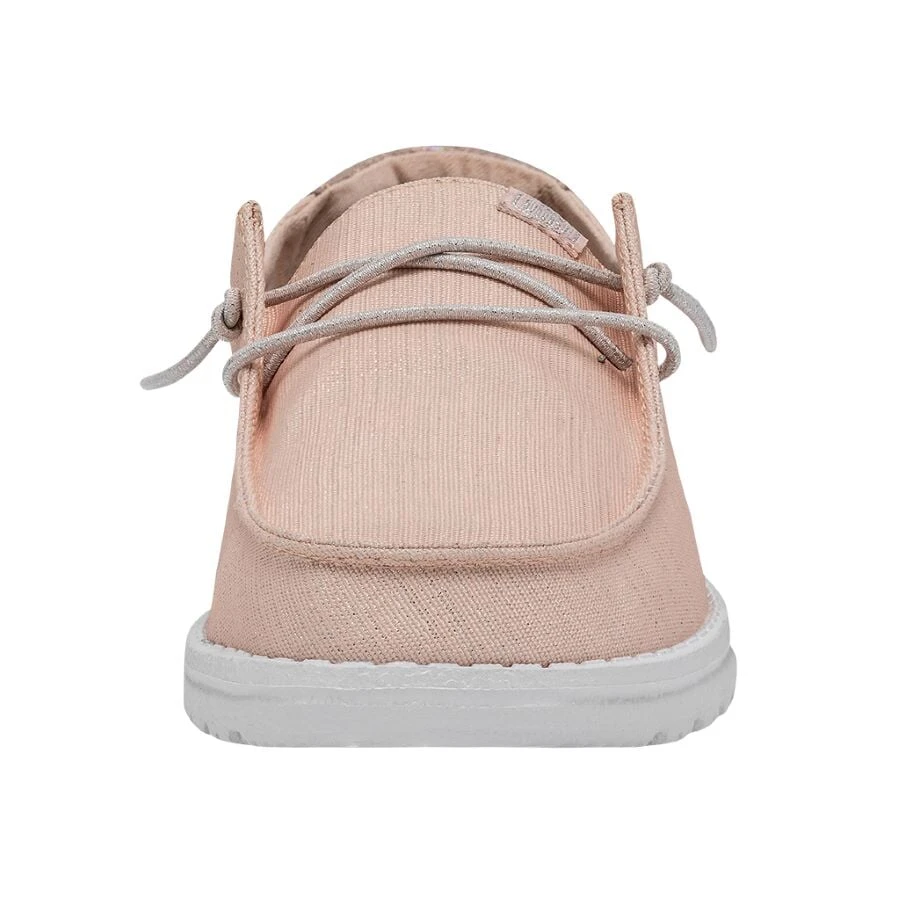 Time to smile for the camera with the sparkling Wendy Glitter collection! Featuring a durable, metallic textile upper in front of a fun glittery heel, and shines with an extra layer of foot-hugging foam. Lined with a light cotton-blend lining for lustrous strides. Finished off on an ultralight outsole with our easy-on, elastic lacing system. You’ve got one red-carpet ready shoe.